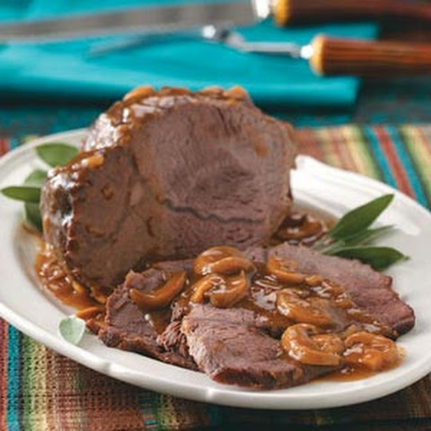 - To serve, slice thinly against the grain, and use pan drippings for gravy.