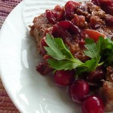 - Add cranberries, sugar, salt and pepper to chops with 1/2 cup water to start. Bring to boil; reduce heat. Simmer, covered, for about 45 minutes or until tender but not dry. Add water if necessary to keep chops from drying out.